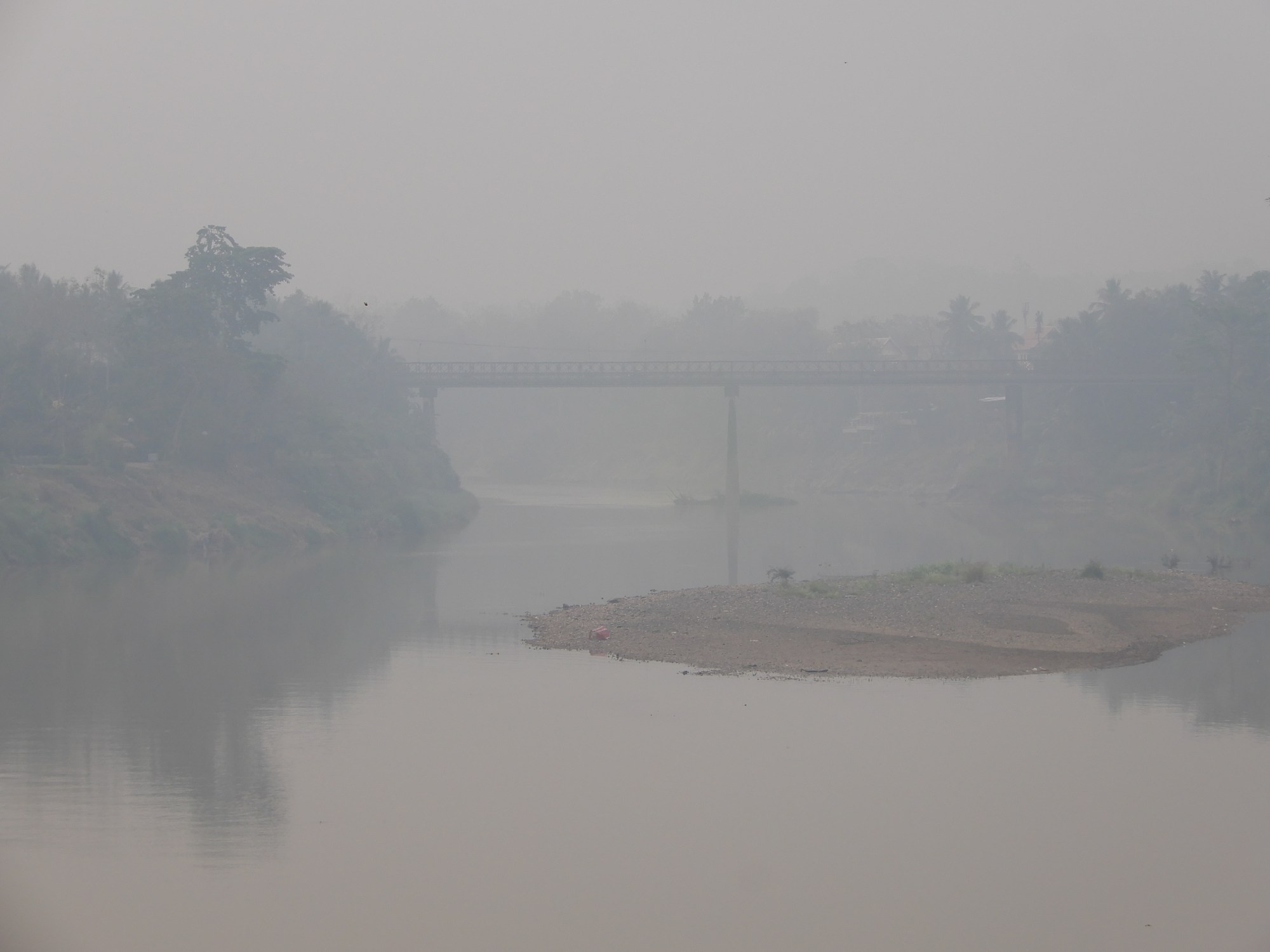 I hurry up to the other side of Luangprabang, the shore of the Mekong. The same. I can only see this side of the river, for a couple of meters at most. It is all flue, like if someone mixed up with the pixels of the picture.